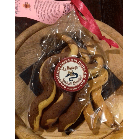 il biscotto a forma di anguilla con impasto classico o bicolore al cacao.